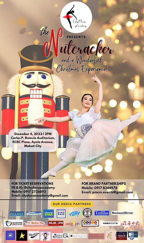 Reserve tickets to "The Nutcracker" through CityDanse Academy's official Facebook and Instagram pages, or call 0917-2726893 . Call PMCM Events Management at 0917-8344978.