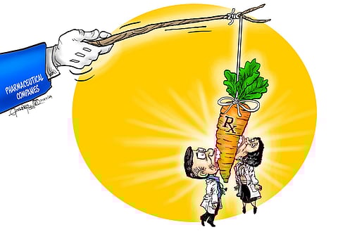 It could be through the handing out of gifts and samples, funding of educational programs, the provision of consultancy fees and kickbacks from prescribed medications, ghostwritten research, and the hosting of medical organizations’ “seminars” and junkets.