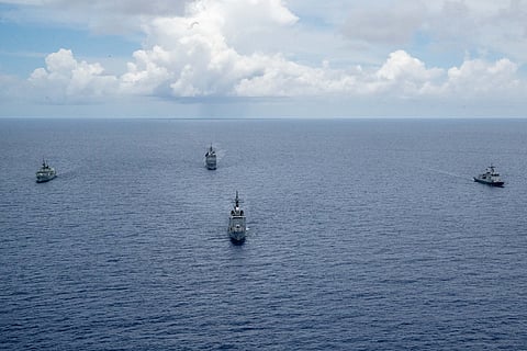 The maneuvers, conducted within the Philippines’ exclusive economic zone (EEZ), is aimed at demonstrating “our collective commitment to strengthening regional and international cooperation in support of a free and open Indo-Pacific,” according to a joint statement by top military officials of the four nations.