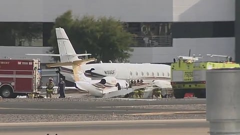 "A Learjet 35A veered off the runway after landing and crashed into a Gulfstream 200 business jet on the ramp at Scottsdale Municipal Airport in Arizona," a spokesperson for the Federal Aviation Authority (FAA) said.