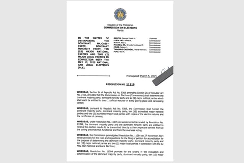 “On the basis of the foregoing considerations, the dominant majority party, the dominant minority party, and the accredited majority political parties for the May 12, 2025 national and local elections (NLE) are: Dominant majority party — Lakas-CMD; Dominant minority party — Nacionalista Party,” according to the resolution issued by Comelec on Thursday.