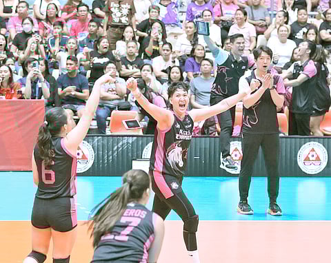 With the Flying Titans at match point, 14-12, Akari clawed back with crucial plays from Soyud and Nisperos, leveling the score at 14-all. Nisperos then delivered the final blow — a sharp crosscourt attack that sealed the win.