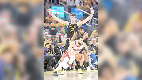 Adams had three of Houston’s five blocked shots as the Rockets kept the Warriors’ potent offense led by Stephen Curry in check.