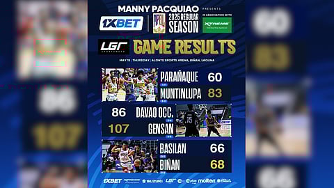 Streaking Biñan withstood Basilan’s final assault and prevailed over Basilan, 68-66, to gain ground in the Manny Pacquiao presents 1xBet-Maharlika Pilipinas Basketball League 2025 Season at the Alonte Sports Arena in Biñan, Laguna late Thursday.