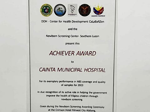 "Our very own Cainta Municipal Hospital was recently awarded a Level 1 Achiever Award by the DOH-Center for Health Development Calabarzon and by the Newborn Screening Center South Luzon," Nieto said.