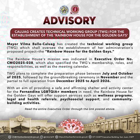 City of San Fernando, Pampanga – The city government is eyeing the construction of the Rainbow House for the Golden Gays for Fernandino LGBTQIA+ members.