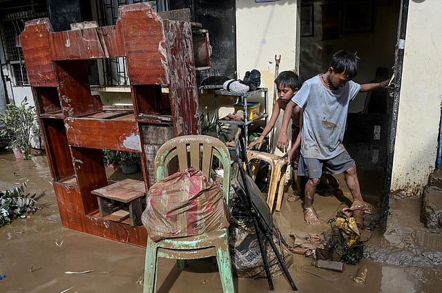 In Banaba village near Manila, Terrence Reyes fled his riverside home with his family and neighbors during the storm as floodwaters rose.