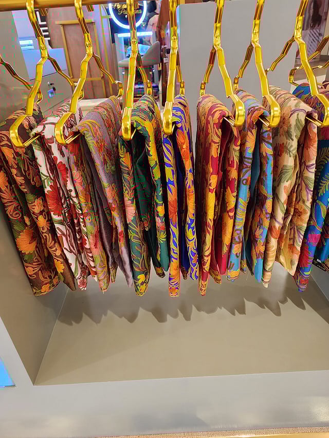 The newly opened Naram Pashmina is a stall at Shangri-La Plaza mall that offers affordable pashmina wraps ranging from P7,500 to P50,000, depending on the embroidery. Bhat comes from a family of weavers in Kashmir who runs a workshop for embroiderers and a factory that packages the pashmina products.