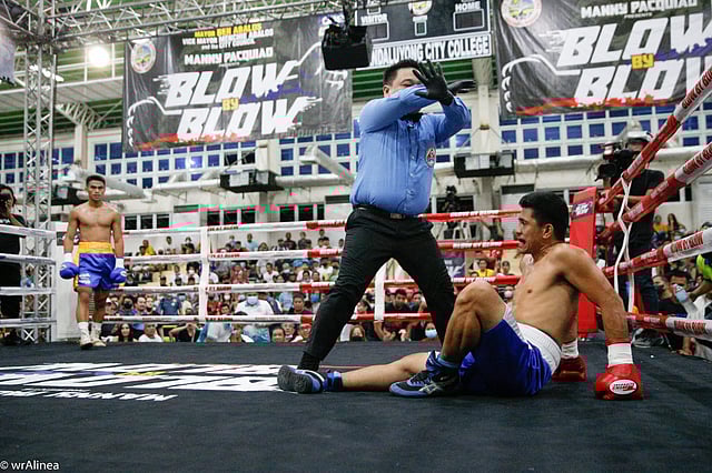 Referee Danrex Tapdasan reached the count of ten with the beleaguered Magboo, 32, still on the floor, wondering what hit him.