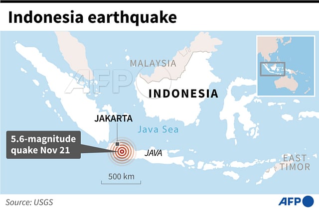The epicenter of the shallow 5.6-magnitude earthquake was located near the West Java town of Cianjur about 100 kilometers south of the capital, according to the United States Geological Survey.