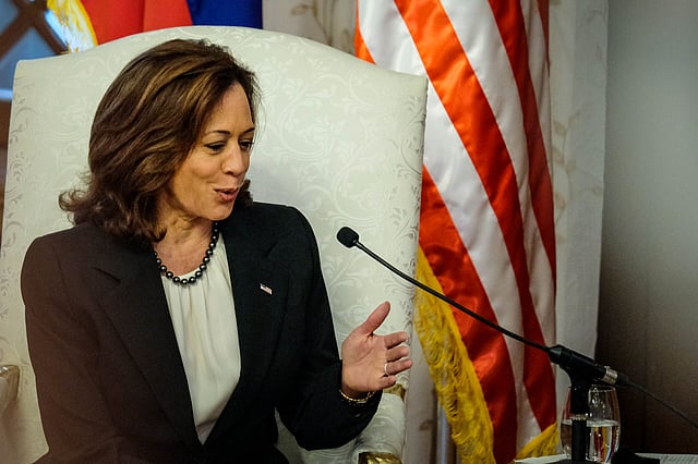 United States Vice President Kamala Harris on Monday exhorted young women in the Philippines to speak up even in difficult times.