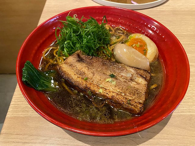 Walking into the restaurant feels like a dream sequence with anime-inspired interiors looking like a cross between a Shinkansen (bullet train) and a ramen shop. Bright lights and neon signs stand out from the outside, catching the attention of passersby.