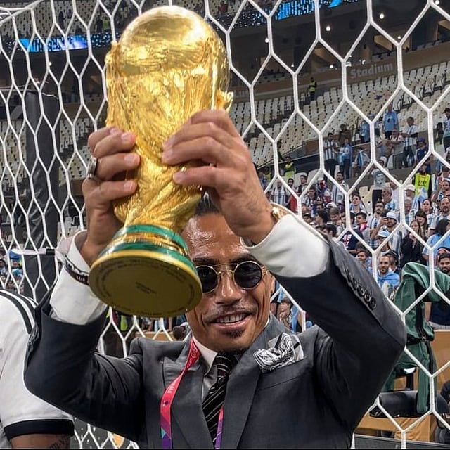 Salt Bae, whose real name is Nusret Gokce, was pictured holding and kissing the trophy after Argentina beat France in Sunday's final in Qatar.