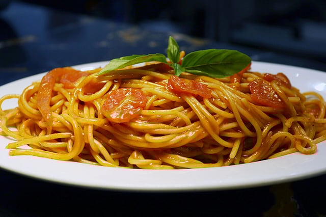 Another dish, Pasta Amatriciana, "is made with bucatini pasta, tomatoes and guanciale, which adds a smoky flavor to the sauce, making it different from the usual tomato sauce."