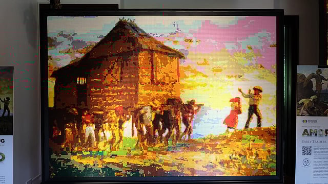 Amorsolo's iconic paintings "Bayanihan", "Dalagang Bukid", and "Early Traders" using LEGO.