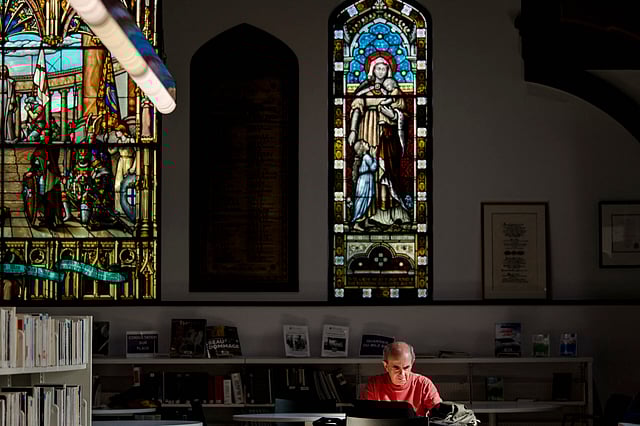 "I really like coming here. I like the little church feel, it is conducive for concentrating," university student Alexia Delestre whispered at the Mordecai-Richler library, which is housed in the old church building.