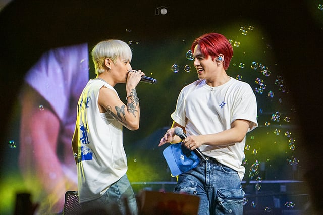 It helps that the two, like the other SB19 boys, are openly warm and tender toward each other, endlessly mirroring each other's actions, holding hands or leaning into each other, never disconnected for long. When seated together, their thighs and shoulders gently touch. Even if they are seated apart, the eye-locking incidents are obvious.