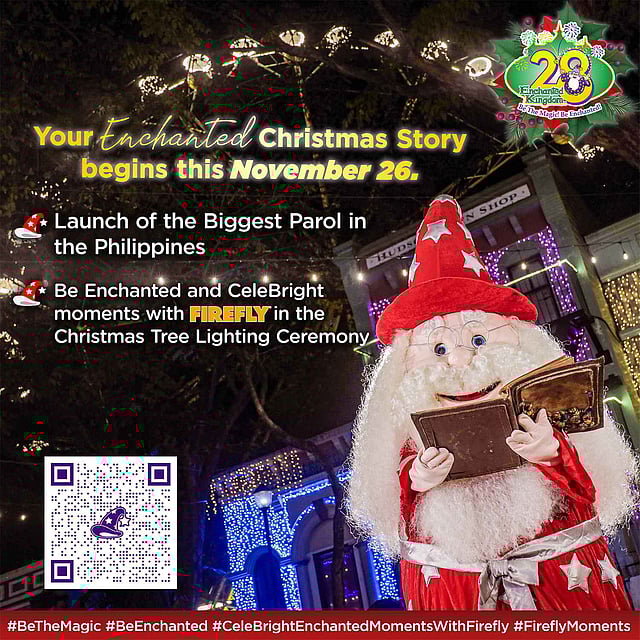 Enchanted Kingdom, the first and only world-class theme park in the Philippines, brightens the holidays with "An Enchanted Christmas Story" starting with the Christmas Tree Lighting and launch of EK's Giant Parol on 26 November, Sunday.
