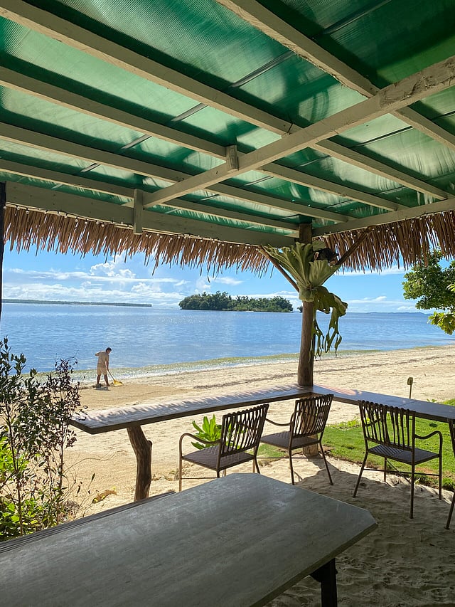 The main house near the restaurant and Malinao beach offers views of Daku and Naked Island.