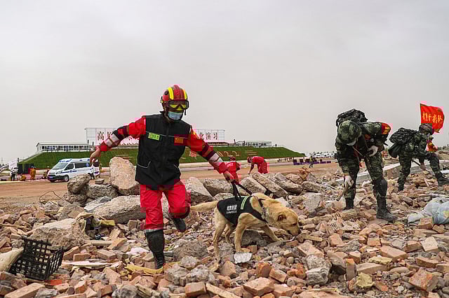 The quake, which was logged as magnitude 5.9 by the US Geological Survey, struck in Gansu province near the border with Qinghai province, where Haidong is located.