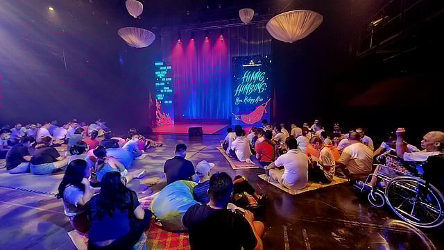 Inside the theater, audience sat on colorful sleeping mats woven by the Sama people with pillows and under umbrellalike decors of kulambo or mosquito nets hanging from the ceiling for the main program, which was hosted by actress Iza Calzado and featuring performances by Bituin Escalante, Baihana, guitarist Ivar Fojas, Aleron Male Choir and Lorelie Macaspac.