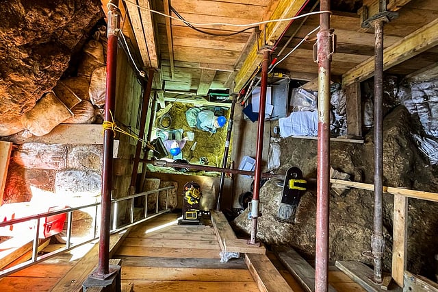The 1930s excavations had not been able to get past a nearly two-metre (six foot) rock blocking the way. But this time, the scientists managed to remove it by hand.