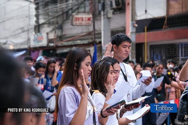 The stretch of Don Quijote Street in Sampaloc, Manila is teeming with college students as the foundation day of PHINMA Saint Jude College Manila takes place on Monday, 12 February 2024.