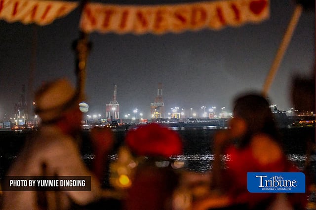 A couple goes on a date two days before Valentine's Day at Gallo Yacht Charters in Manila Bay on Monday, 12 February 2024. They enjoyed a sumptuous dinner while docked viewing the city lights of Manila.