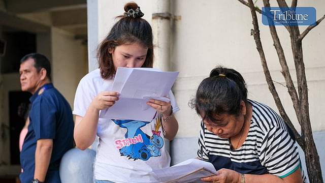 Clarisse Castillo is assisted by her grandmother, Lilibeth Castillo, as they complete a form as one of the requirements at the Manila City government's Animal Bite Treatment Center before receiving a free rabies vaccine on Tuesday, 20 February 2024, after being beaten by her dog inside their home.