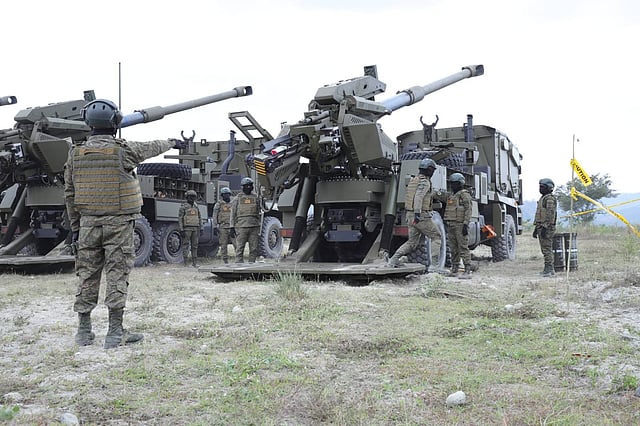 In its CATEX-Katihan Battle Period 2 at Col. Ernesto Rabina Air Base (CERAB) in Capas, Tarlac on 15 March, army personnel from the 502nd Combined Arms Brigade showcased their capabilities in live fire exercise utilizing the Autonomous Truck Mounted Howitzer System (ATMOS), 155mm self-propelled guns.
