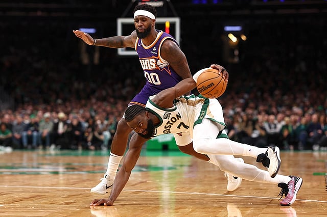 Ang big three ng Boston na sina Brown, Jayson Tatum at Al Horford ay nagsanib para sa 87 puntos sa isang nakasisilaw na pagganap laban sa isang koponan ng Suns na naghahangad na makaganti sa 117-107 kabiguan sa bahay noong Sabado sa Celtics sa Arizona.