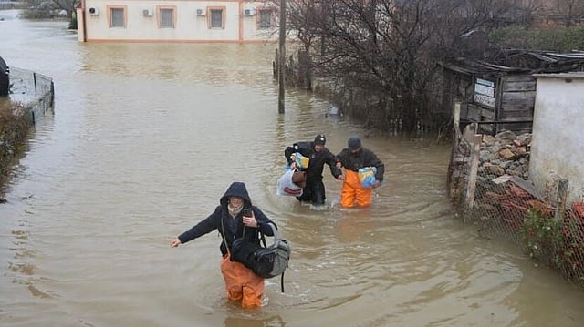 Thousands of people in Ukraine were left without power on Tuesday after strong winds and heavy rain damaged electrical infrastructure, authorities said.