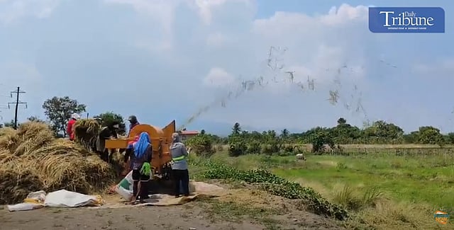 Farmers are threshing rice stalks at a farm in Bagac, Bataan, on Sunday, 18 May 2024. | via Jonas Reyes