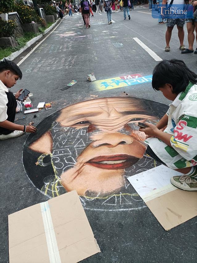 LOOK: Chalk artists put the final touches on their entries to the Sabsabong ti Mayo in Baguio (Flowers of May in Baguio) chalk art competition at Session Road in Baguio City. | via Aldwin Quitasol