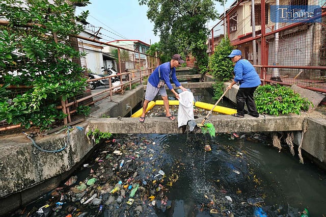 WATCH: 'Estero rangers' from the Department of Environment and Natural Resources maintain a balanced stance while clearing up clogged and floating debris in Manila's Estero de Pandacan on Monday, 3 June 2024.| via KING RODRIGUEZ