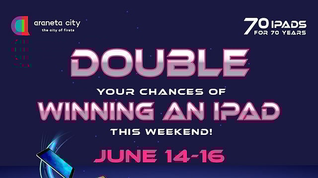 As Araneta City turns 70 this year, the #CityofFirsts is giving away 70 units of the Apple iPad! Shop in Araneta City and get twice the number of e-raffle stubs when you present a P1,000 single-receipt purchase from 14 to 16 June 2024 at any redemption booths in Gateway Mall 1& 2, Ali Mall, and Farmers Plaza.