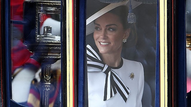 Catherine, Princess of Wales, on Saturday made a tentative return to public life for the first time since being diagnosed with cancer, attending a military parade in central London to mark Britain's King Charles III's official birthday.