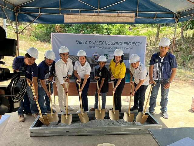 Representatives of Bloomberry Cultural Foundation Inc. (BCFI), which is sponsoring the houses, and developers Archion and Credibuild Development Corporation, as well as local government officials held the ceremonial shoveling during the first concrete pouring for the project of the provincial government last 24 May.