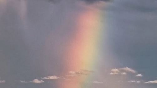 WATCH: A rainbow appears at Cagwait Beach in Surigao del Sur, adding beauty and wonder to the surrounding on 17 June 2024. | via YUMMIE DINGDING