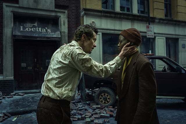 In the middle of the chaos and horror, Samira and her cat Frodo find companionship in the form of Eric, played by Joseph Quinn. In Quinn’s portrayal, writer John Krasinski saw real potential, along with his chemistry with co-star Nyong’o. “Joe’s wildly talented,” says Krasinski. “In Day One, he walks the razor’s edge of fight or flight on what is the worst day of his character’s life. He and Samira are trying to survive under harrowing circumstances that force them together. That relationship makes them the heartbeat of the movie.”