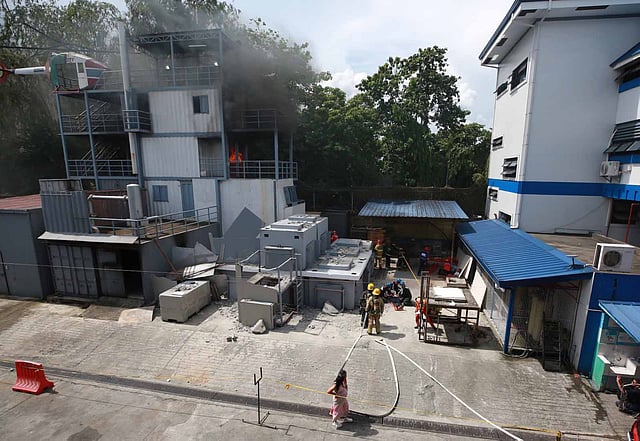 LOOK: Various disaster response units rescue mock victims during the 2nd quarter Nationwide Simultaneous Earthquake Drill at the Red Training Center of the Pasig City Disaster Risk Reduction and Management Office on Friday, 28 June 2024. | via Analy Labor