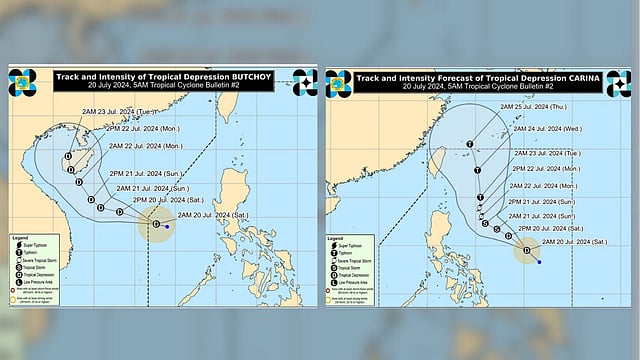 The Philippine Atmospheric, Geophysical and Astronomical Services Administration (PAGASA) reported that Tropical Depressions "Butchoy" and "Carina" are not expected to significantly impact the Philippines.