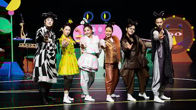 Stepping into the role of the friendly Bear, Lee Sena plays the ajaeng (a large Korean bowed zither having seven strings). Yun Yi Na performs with the gayageum (a plucked zither with 12 strings) as the Oriole and Yang Yujin is the Wolf pulling the strings of the geomungo (a traditional plucked zither with both bridges and frets). For the showstopping pansori, Yu Taegyeom takes the stage as the celebrant Tiger with Lee Jisuk as the concerned Fox.
