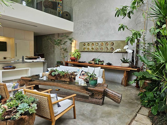 His abode, called the Glass House, is not situated in a forest but inside an old subdivision where he nurtured a forest around and even in his house.