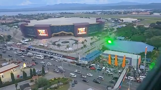 The footage, captured from the air, shows what appears to be lasers aimed at the aircraft, reportedly by members of the religious group led by Pastor Apollo C. Quiboloy. The incident temporarily impaired the vision of the pilots, raising serious safety concerns.