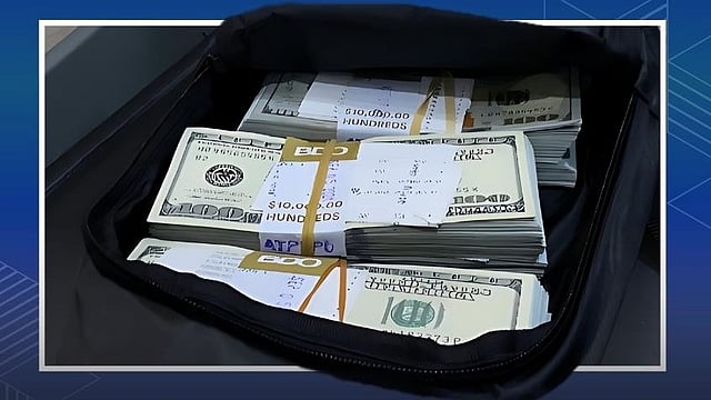 During a physical inspection, two black plastic bags containing cash were found in Hilario’s body bag, and two more were concealed inside the liner of his carry-on luggage.