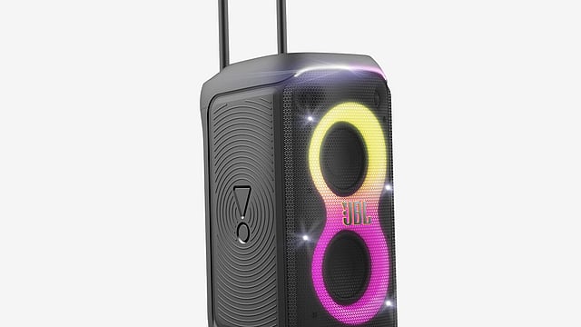 Powered by an energy-efficient class-D amplifier that delivers 240 watts of power, the speaker has enough oomph to produce loud, dynamic sound without distortion. If one needs to go louder, the 320, of course, can be daisy-chained with others in the JBL PartyBox series either as floor arrays or as a stereo pair.