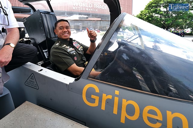 The AFP chief also had his photo taken while sitting in the cockpit of a Saab JAS 39 Gripen, a light single-engine supersonic multirole fighter aircraft built by Swedish aerospace and defense company Saab AB. KING RODRIGUEZ