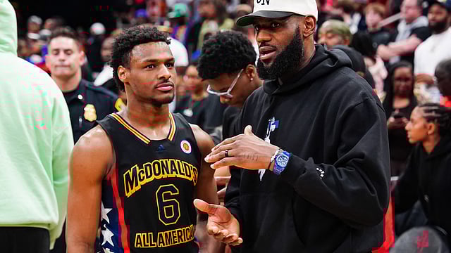 That includes against Bronny, Pelinka said, describing a recent team pickup game where Bronny "got switched onto LeBron, and LeBron took him baseline and up and under off the glass.