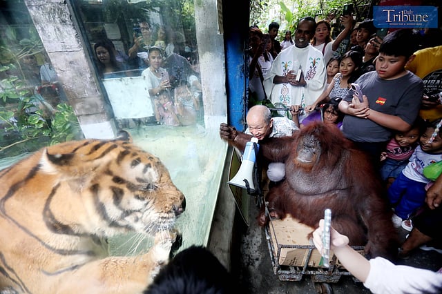 LOOK: In honor of World Animal Day and the feast day of St. Francis of Assisi, patron saint of animals, on 4 October, Father Jeya Seelan leads a blessing ceremony of the animals at the Malabon Zoo on Sunday, 29 September 2024. Joining the occasion were Malabon Zoo founder Manny Tangco and hundreds of pet lovers and their pets. ANALY LABOR